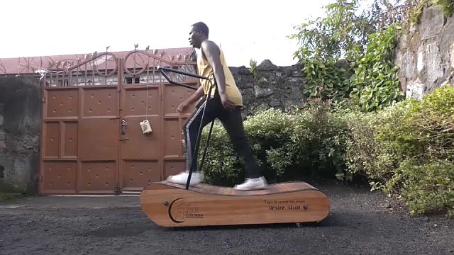 24-year-old Congolese invents purely wooden treadmill