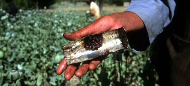 Opium harvest in a poppy field in Badakhshan, Afghanistan. Raw opium is cooked before being suitable for smoking. Photo: IRIN/Manoocher Deghati