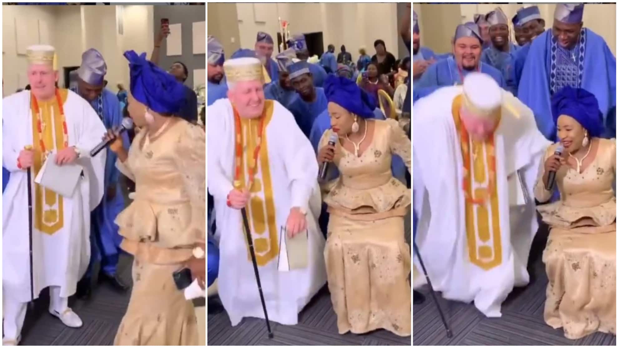 Oyinbo man makes funny moves, dances out of tune to Nigerian song, video stirs massive reactions