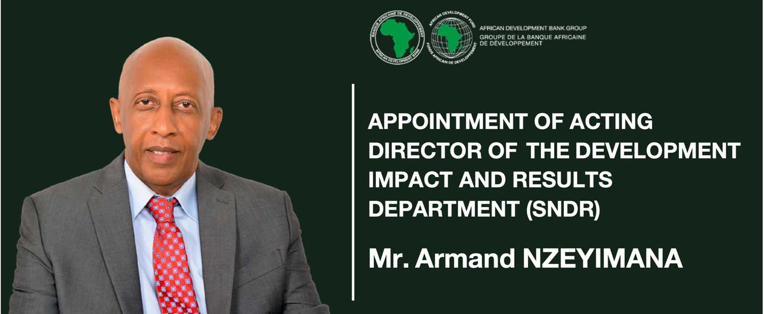 The African Development Bank Group has appointed Mr. Armand Nzeyimana, a national of Burundi, as Director of the Development Impact and Results Department, effective 1st May 2023.