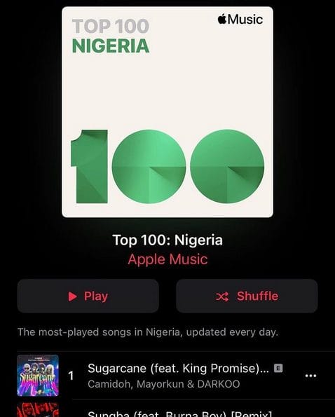 Perhaps that did the magic after it jumped straight to the top of Nigeria’s Top 100 Chart On Apple .