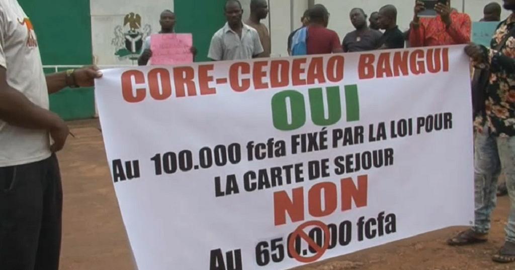 Nationals of West African states on Monday staged a protest in the Central African Republic (CAR) capital, Bangui to denounce the new fees for acquiring residence permits.