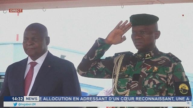 Central African president appears on Gabon state TV welcomed by Oligui