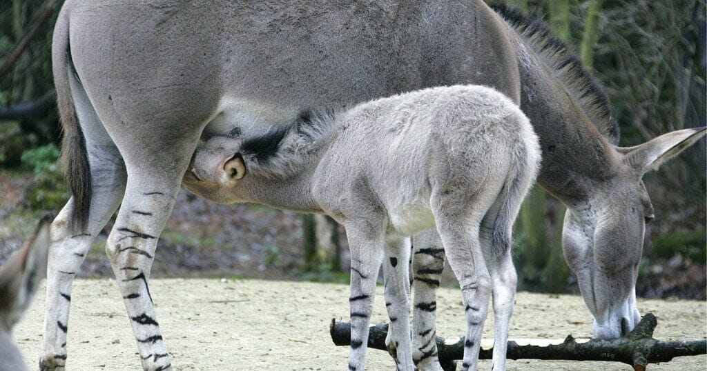 The body of the African Wild Ass is very similar to that of any donkey, but it has white and striped legs like those of a zebra, despite not being a hybrid between the two species.