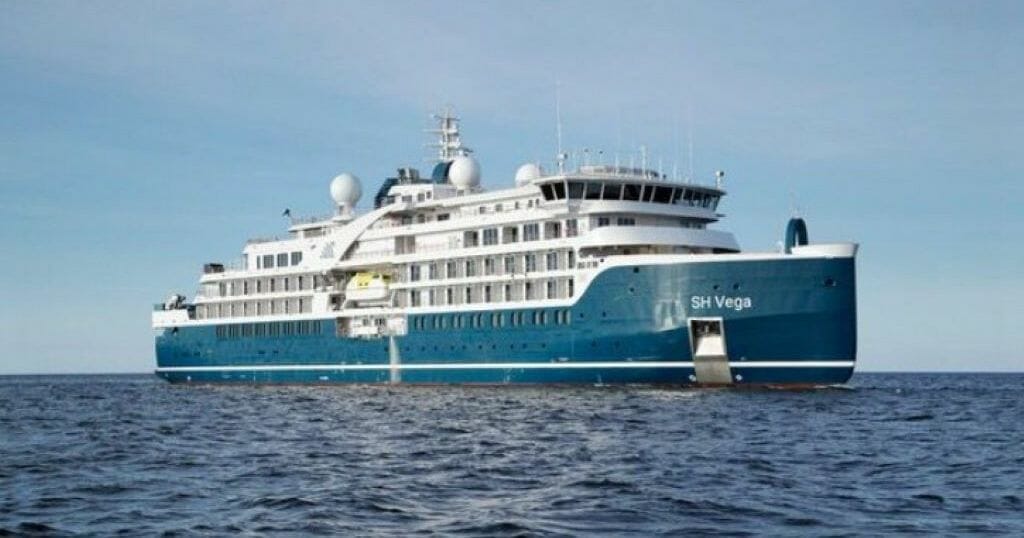 Finnish flag floating in the air, 115 meters of steel carrying 150 tourists of various nationalities, the SH Vega cruise ship was welcomed in the port of the economic and oil capital of Pointe-Noire, in Congo-Brazzaville on Wednesday.