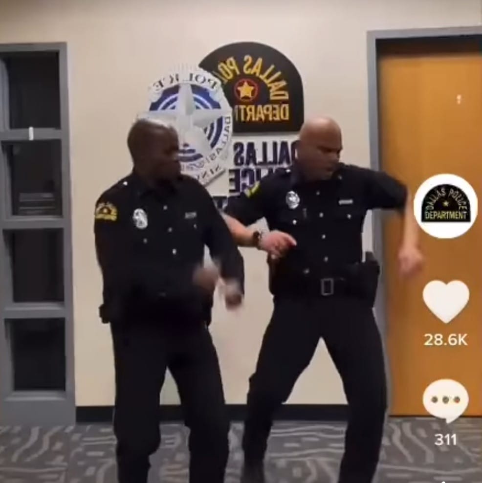 In a video shared to the Department’s page, two Dallas Police officers are seen dancing to Goya Menor and Nektunez’ “You wanna chill with the big boys”.