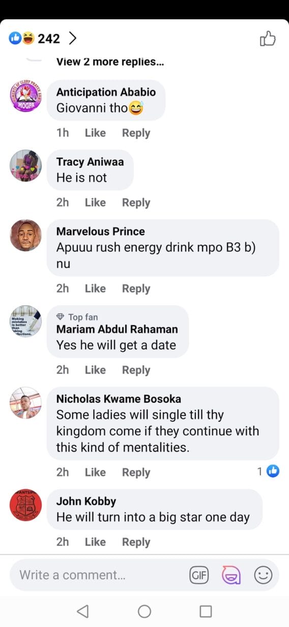 A funny comment by Marvelous Prince made my evening”apuu, Rush energy drink mpo b3 b) no”. Instead of wishing our brother well, this has become a friendly Ghana versus Naija battle.