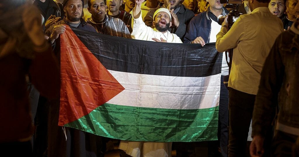 Dozens of Moroccans protest over the latest Israeli police actions in Jerusalem