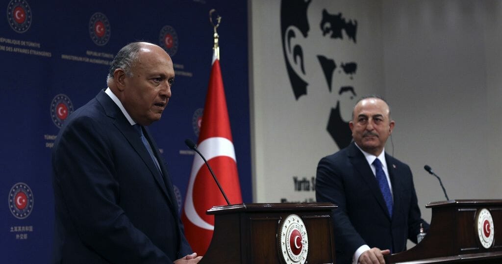 Egypt’s foreign minister on Thursday called on Turkey to withdraw its troops from Syria, a sign of lingering tensions despite efforts by Ankara and Cairo to restore ties.