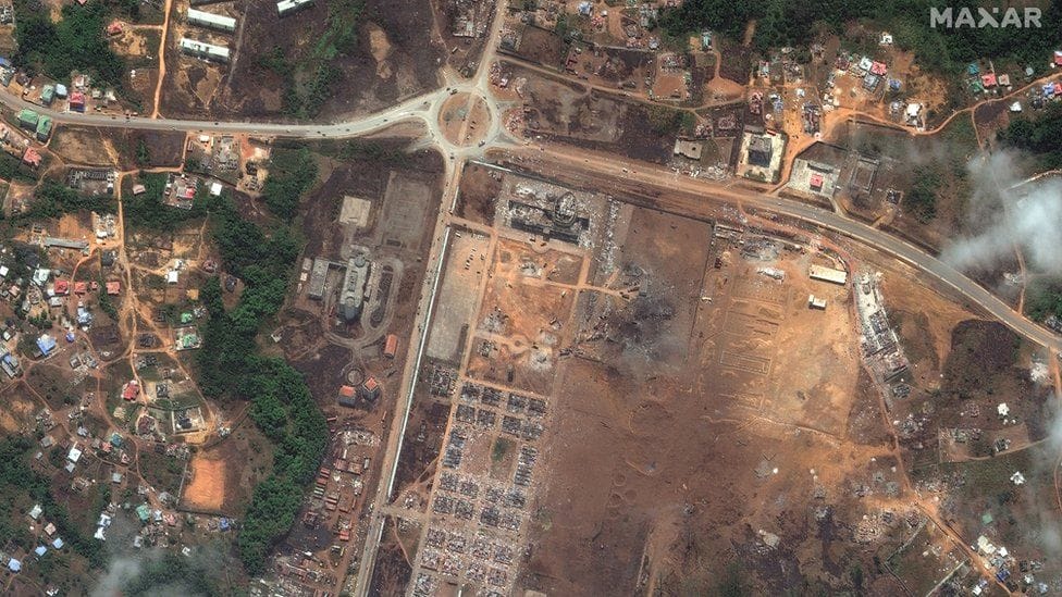 Buildings at the compound and houses in surrounding districts were badly destroyed by the explosions.