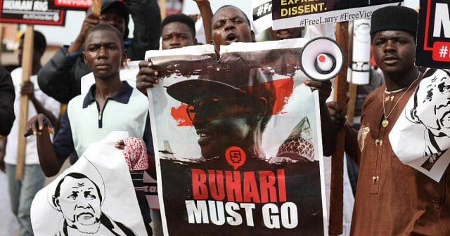 They had been wearing T-shirts with the slogan “Buhari Must Go!” when they were detained by agents from the Department of State Services (DSS), which is in charge of counter-intelligence and domestic security, lawyer Tope Tomekun told AFP.