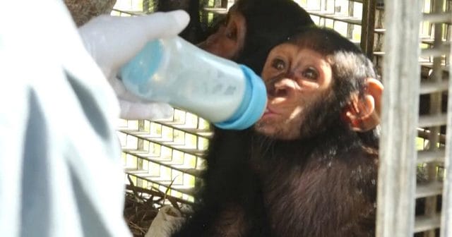 “When a person buys one baby chimpanzee, he is taking part in the massacre of the entire (family) group, or about 15 individuals”, said Pauline Grentzinger, a veterinarian at the Lekedi Natural Park.
