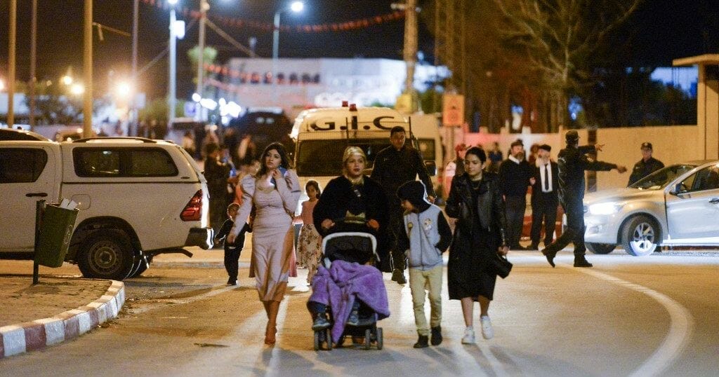 Tunisian police cordon off the area around the Ghriba synagogue on the island of Djerba after a deadly gun attack mars the annual pilgrimage to Africa’s oldest synagogue