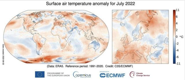 Using data from the European Commission’s Copernicus Climate Change Service, the UN weather agency confirmed that Europe had its sixth warmest July
