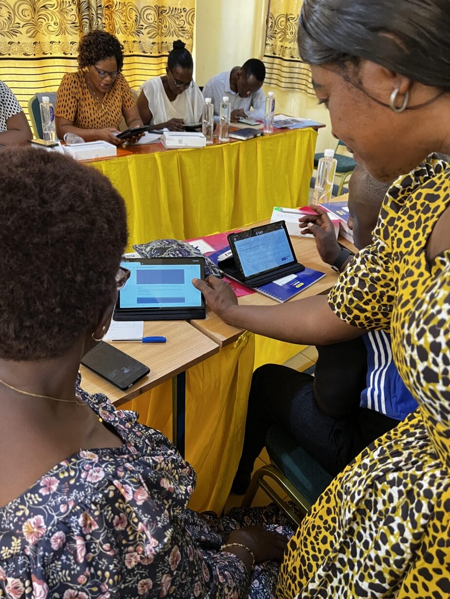 Health personnel in Tanzania participating in on-line training on assistive products, as part of an overall program aimed at provision of simple assistive products through community and primary health care facilities – making products such as walking aids and reading glasses more readily available for people within their local area. Digital technology was instrumental in facilitating efficient learning through the platform, and enabling support for health workers from their mentors through communication apps after the training. Credit: WHO/Kylie Shae