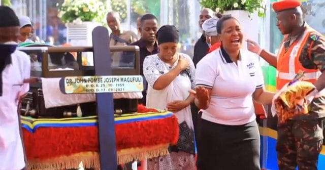 On Sunday collapsed with grief at a public ceremony in the country’s largest city Dar es Salaam. John Magufuli, died suddenly last week after an illness officials say was heart failure.
