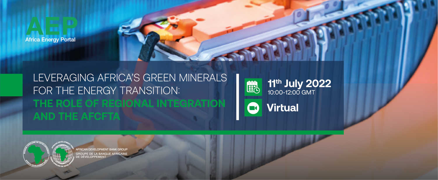 The African Development Bank will host a webinar on green minerals and the energy transition on 11 July 2022 under the theme: Leveraging Africa’s green minerals for the energy transition: The role of regional integration and the Africa Continental Free Trade Agreement (AfCFTA).