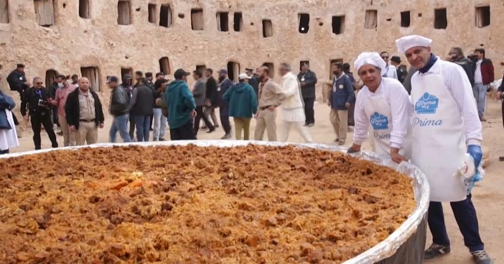 The organisers say they aim to create was to create the single largest couscous dish in the world. The couscous was prepared by 15 of the best Libyan chefs using 2,500 kgs of couscous in one giant single dish.