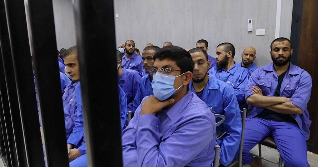 Clad in blue prison overalls the suspects appeared in the dock. Among the accused, Libyan, Tunisian, Egyptian, Algerian, Moroccan, Jordanian and Sudanese nationals.