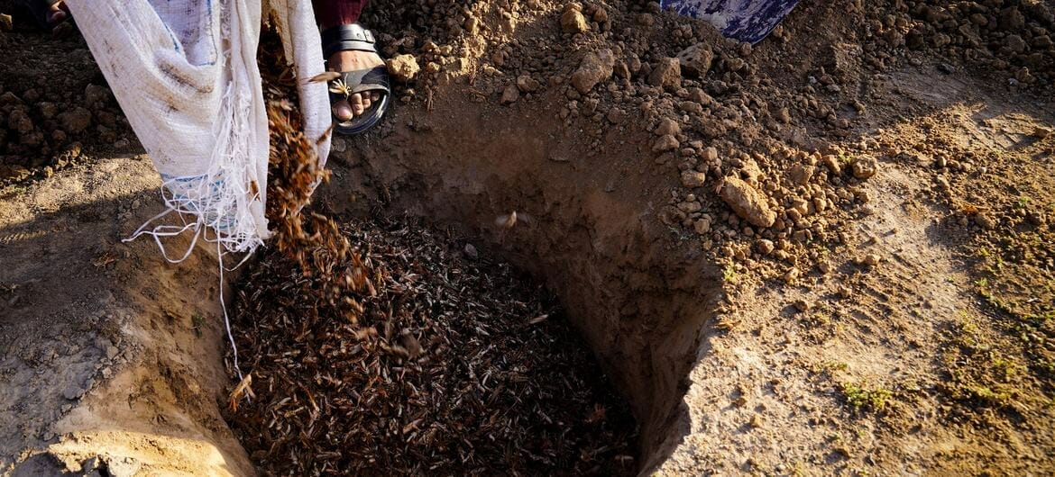 With pesticides in short supply, thousands of people in communities across the affected provinces were working “day and night” to eradicate the pests using “traditional mechanical control methods” before they become adults and begin to swarm, he said.