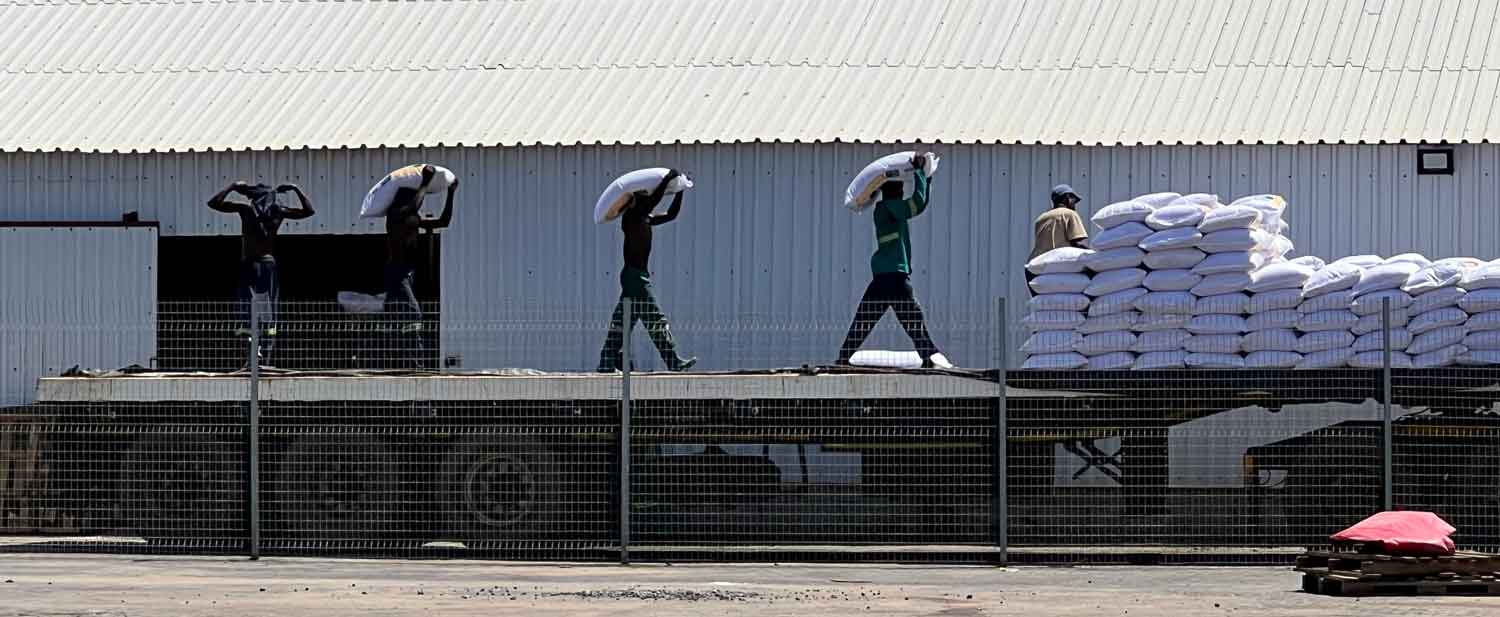 Porters offload a fertilizer truck at a fertilizer wholesaler’s warehouse in Mozambique African Development Bank Group
