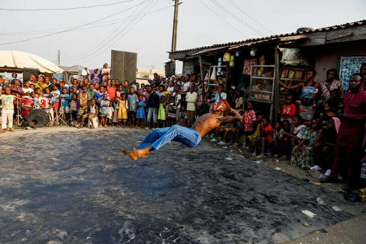 Community leader Oriyomi Akeem said Slum Party has helped bring peace to a neighbourhood once known as a no-go area overrun by gangs. “Now everything is calm and good,” Akeem said.