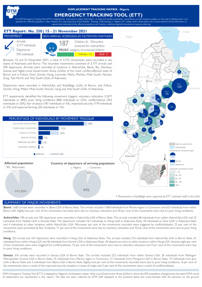 Nigeria: Displacement Tracking Matrix (DTM) Emergency Tracking Tool (ETT) Report: 250 | 15 – 21 November 2021