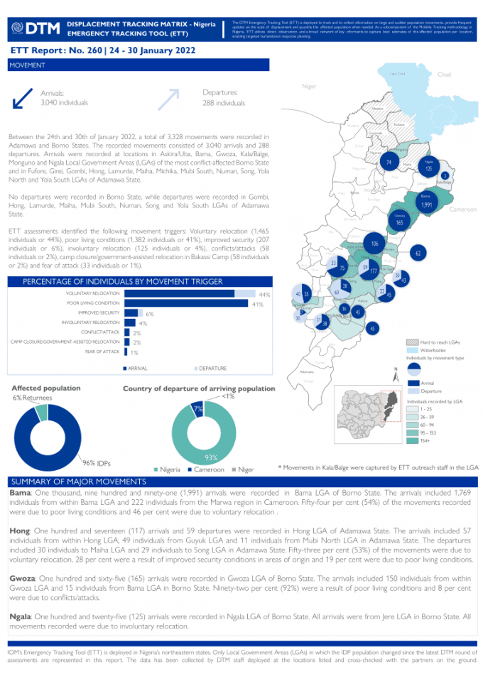 Nigeria: Displacement Tracking Matrix (DTM) Emergency Tracking Tool (ETT) Report: 260 | 24 – 30 January 2022