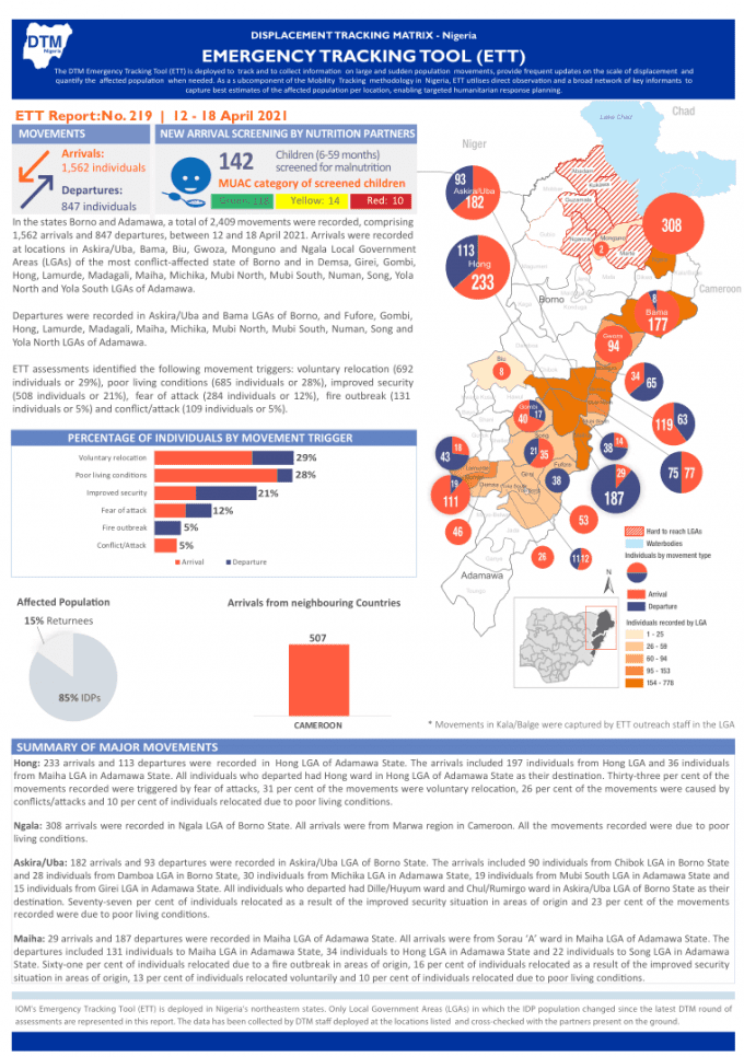 Nigeria: Displacement Tracking Matrix (DTM) Emergency Tracking Tool (ETT) Report: No. 219 (12 – 18 April 2021)