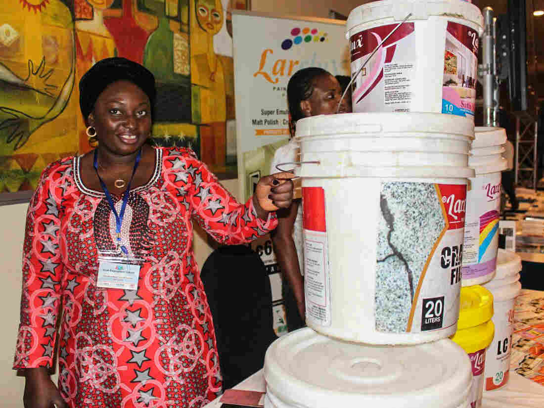 Lariat Alhassan had lots of great paint to sell but no office where she could meet clients. And then she heard an ad on the radio that seemed too good to be true. Courtesy of Lariat Alhassan hide caption