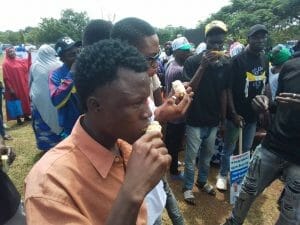 Below are photos of free ‘Agbado-eating’ supporters and youths who attended the City Boy Movement concert at Unity Fountain in Abuja on Wednesday. “Agbado” is a Yoruba word for boiled corn.