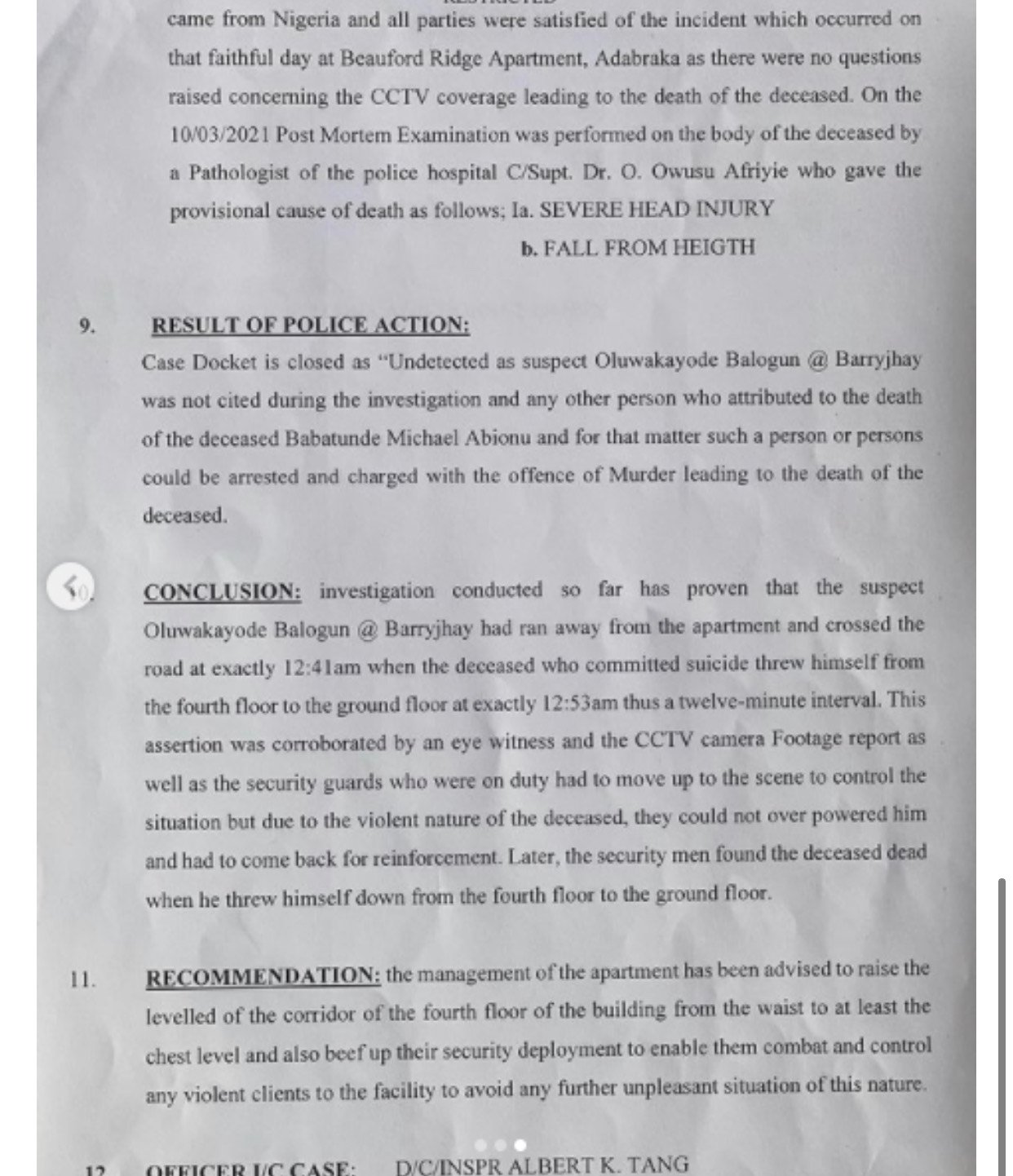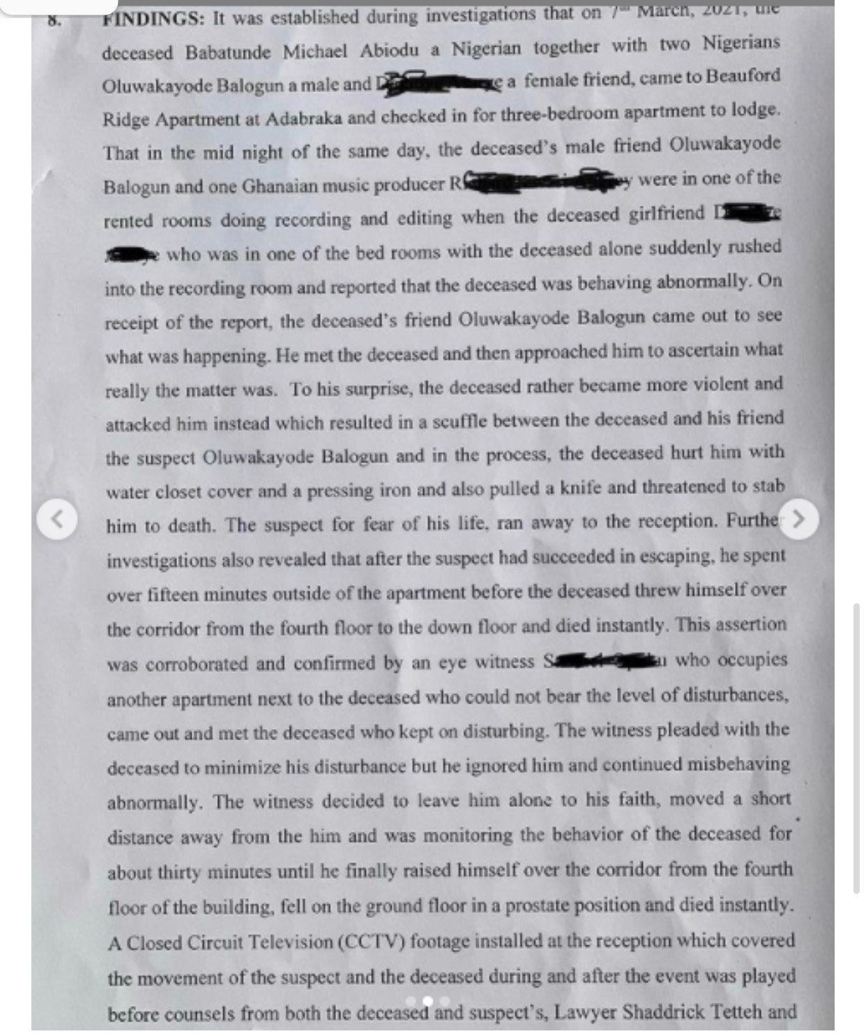 The report further revealed that an eyewitness and CCTV