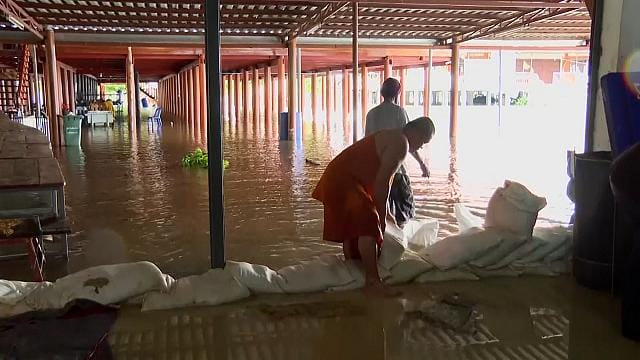 Provincial authorities said the flood alert continues for communities along the Tha Chin River as the Krasiao Reservoir in the northeastern part of the province has reached capacity, forcing officials to release water into its already swollen stream. Many areas in northern and central Thailand have been flooded since late September, after tropical storm Dianmu and seasonal monsoon rains brought huge amounts of rainwater to the region. More than 300,000 homes in 32 provinces have been affected, while the capital Bangkok has so far escaped any major flooding. The Thai Meteorological Department said parts of Thailand will continue to receive seasonal monsoon rains over the next 10 days.