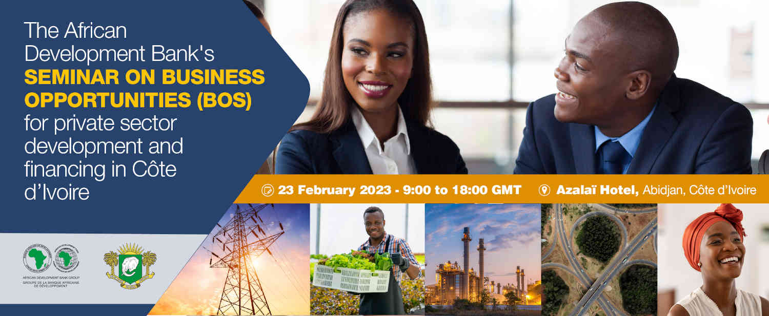 The African Development Bank Group and the government of Cote d’Ivoire will hold a seminar on business opportunities in Côte d’Ivoire at the Azalaï Hotel in Abidjan on 23 February 2023.