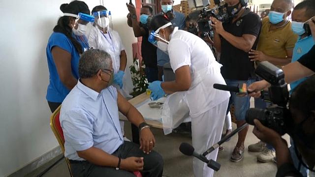 The president of the archipelago, Wavel Ramkalawan, was among the first people vaccinated.