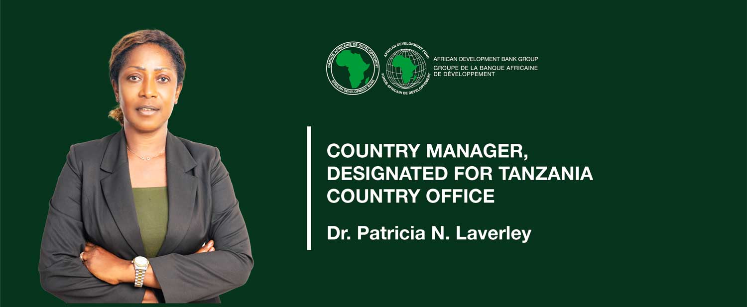 The African Development Bank Group is pleased to announce the appointment of Dr. Patricia N. Laverley as Country Manager, designated for the Tanzania Country Office, effective 01 November 2021.