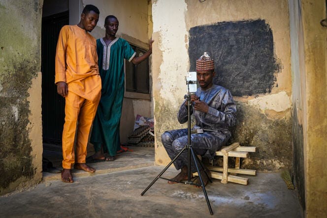 A pop music tune rose from the small courtyard tucked away down an alley in Gwale, a working-class neighborhood in the large Muslim city of Kano in northern Nigeria. It was still early on that December morning in 2022, but Mubarak Muhammad and his two brothers were already hunched over their mixing boards. Music production is one of the many activities of the hyperactive 25-year-old on the internet.