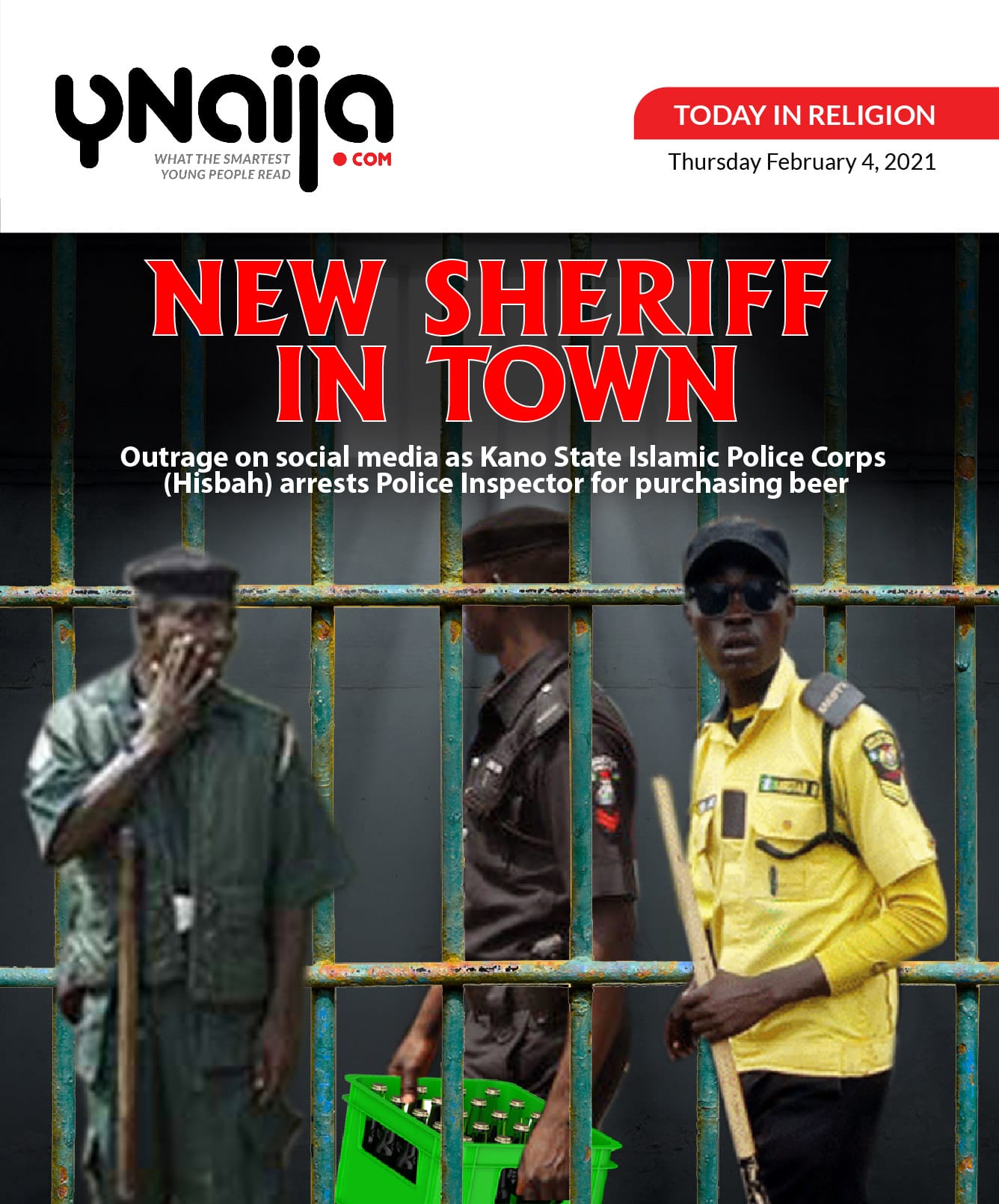 An officer of the NPF known simply as Inspector OC Gulder stands detained by Hisbah for allegedly supplying beer to a vendor in Sabon Gari ‘New Town,’ Kano.