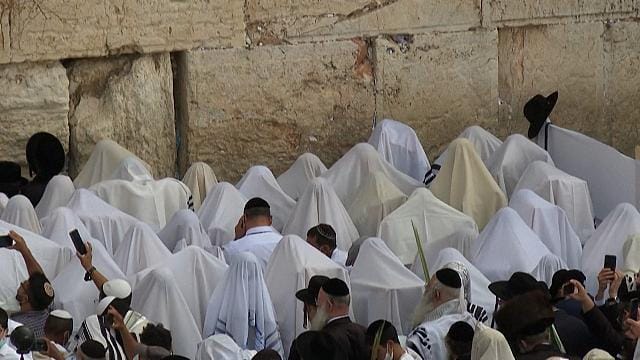 Thousands of Jewish worshippers flock to the Western Wall for Sukkot