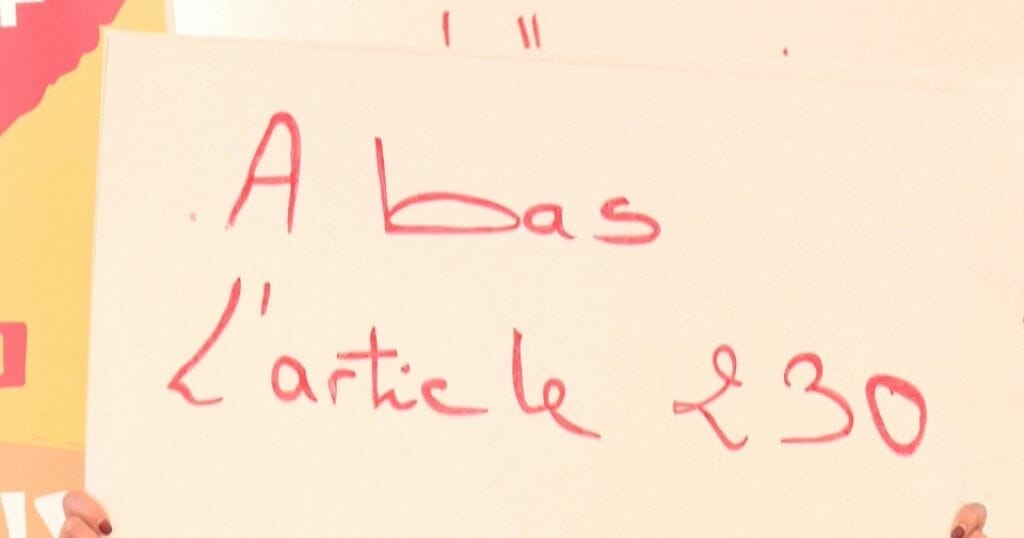 Many demonstrators held up placards calling for the “article of shame” to be removed, referring to Article 230 of the penal code which punishes homosexual acts by both men and women with a prison sentence.