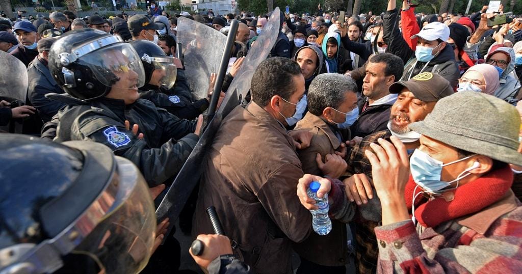 Tunisian police used tear gas and water cannons on Friday against hundreds of demonstrators who defied a ban on gatherings to protest against President Kais Saied’s July power grab.