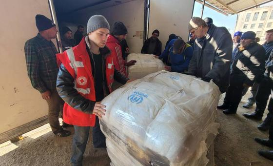 The inter-agency convoy from the International Organization for Migration (IOM), UN refugee agency (UNHCR), UN Children’s Fund (UNICEF), the World Food Programme (WFP) – and INGO People in Need – brought life-saving food rations, flour, plastic sheeting and blankets for some 17,000 people, as well as four electricity generators for use by the local hospital.