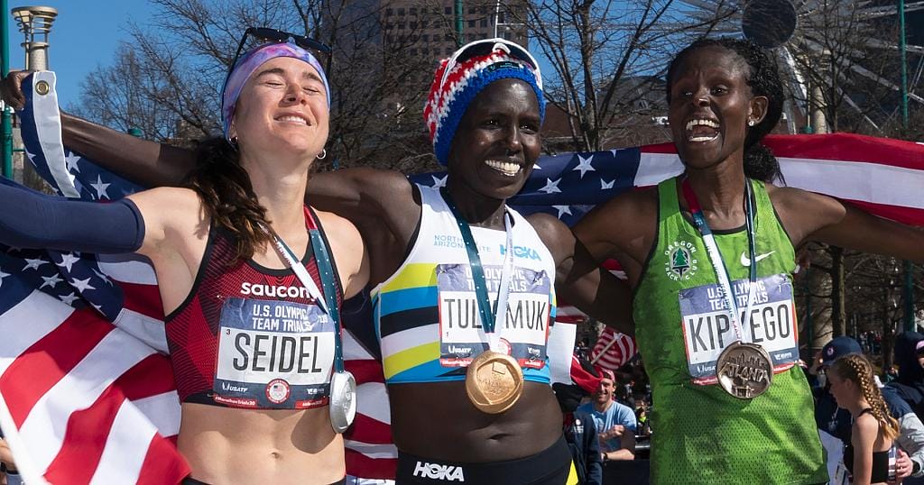 The original plan was to start a family after the Tokyo Olympics in 2020. But when the Summer Games were postponed by the pandemic, the 32-year-old Tuliamuk and her fiancé, Tim Gannon, decided not to wait. She had a spot on the team thanks to her win at the U.S. marathon trials on Feb. 29, 2020, just days before the coronavirus shut things down.