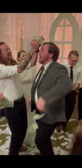 Though the location of the event was not known, this is the first time heavy spraying of dollar bills will be spotted at a white gathering.
