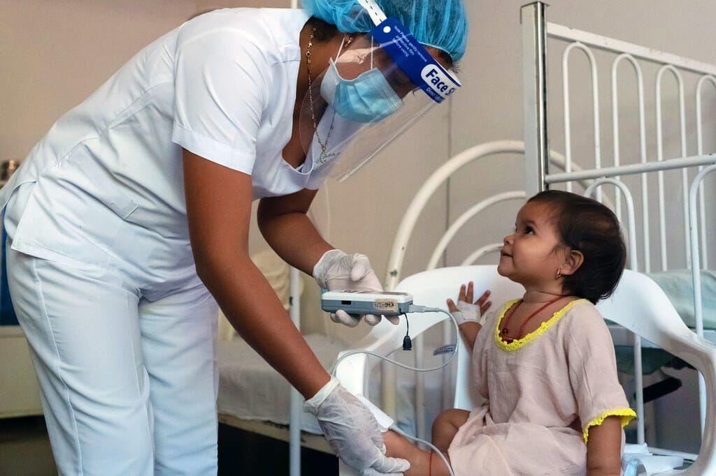 A nurse attends to a young patient at the ESE Hospital de Nazareth in Alta Guajira, Colombia.