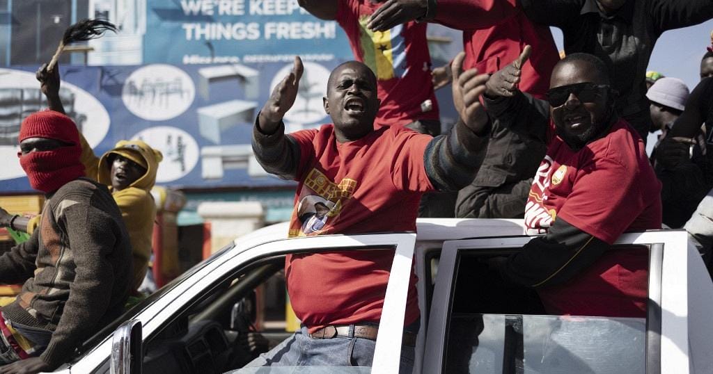 “I hope Lungu accepts the situation,” she added, as fervent groups of UPND supporters ran past, chanting and waving sticks in the air. Some groups carried coffins drapped in Lungu-printed fabric.
